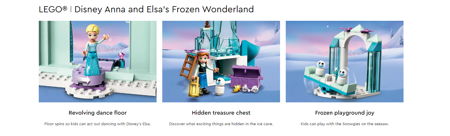 Kids and adults can join Disney’s Anna, Elsa and Olaf as they spend time at the ice castle. 4+ sets are a great way for adults to share the building fun with youngsters, whether they are a seasoned LEGO fan or are discovering LEGO bricks for the first time.