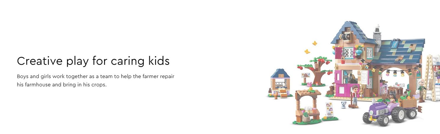 Nurture the imaginations of kids aged 7+ with the Organic Farm (41721) building toy. Kids immerse themselves in a world of role-play fun as they come to the aid of the injured farmer, lovingly restoring the traditional farmhouse and working as a team to complete the jobs around the farm.