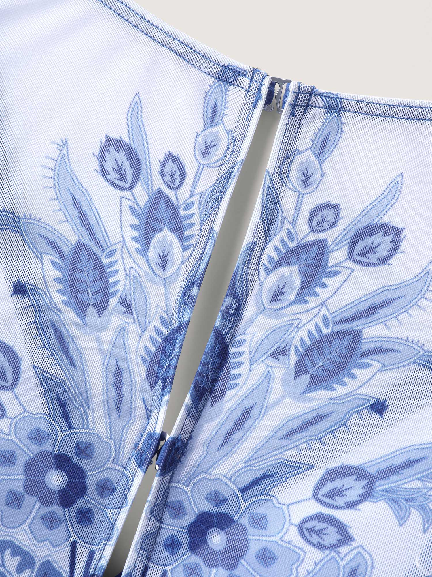 Boho Print Sheer Back Adjustable Buckle Swim Dress